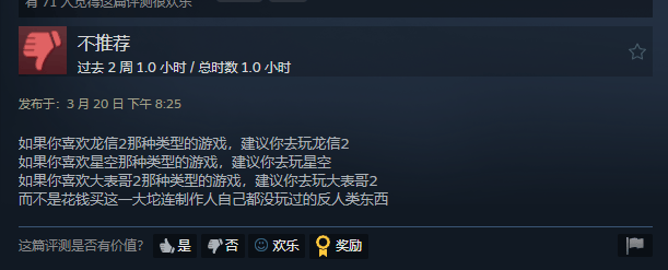 所以玩到后面,小发真的不知道该怎么评价这游戏,就连游戏的STEAM评价,也从最开始的多半差评,回升到如今的褒贬不一,进入到了拉扯阶段。