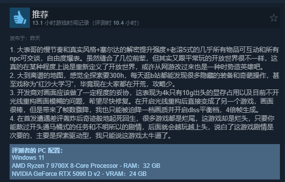 也有人觉得红沙上比塞尔达,下比老滚五,神作无疑。