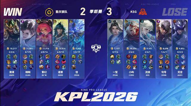 前两局的狼队简直像是没睡醒,连续两局被人头零封,粉丝可能都觉得这场没了。KSG连续两局人头零封狼队,也是打出自信了,第三局选了个露娜。