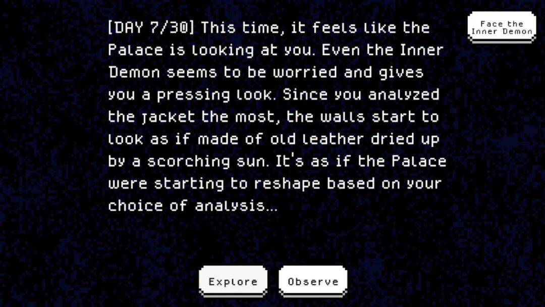 一款文字冒险游戏,讲述驱除朋友体内恶魔的故事。分析承载记忆的物品,揭开她被附身的缘由,与她对话并找出该为祭品献出哪件物品。无论付出何种代价,都要拯救你的朋友。