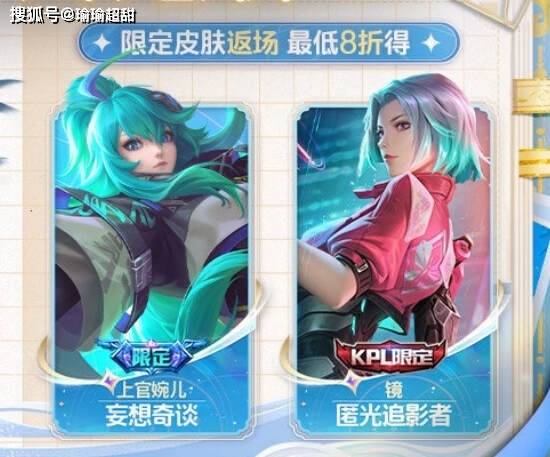 然后月度福利礼册里面还有两款限定皮肤,这两款限定皮肤最低是可以八折获得的,相当于和首周折扣价一样,分别是上官婉儿的妄想奇谈和镜的 KPL。