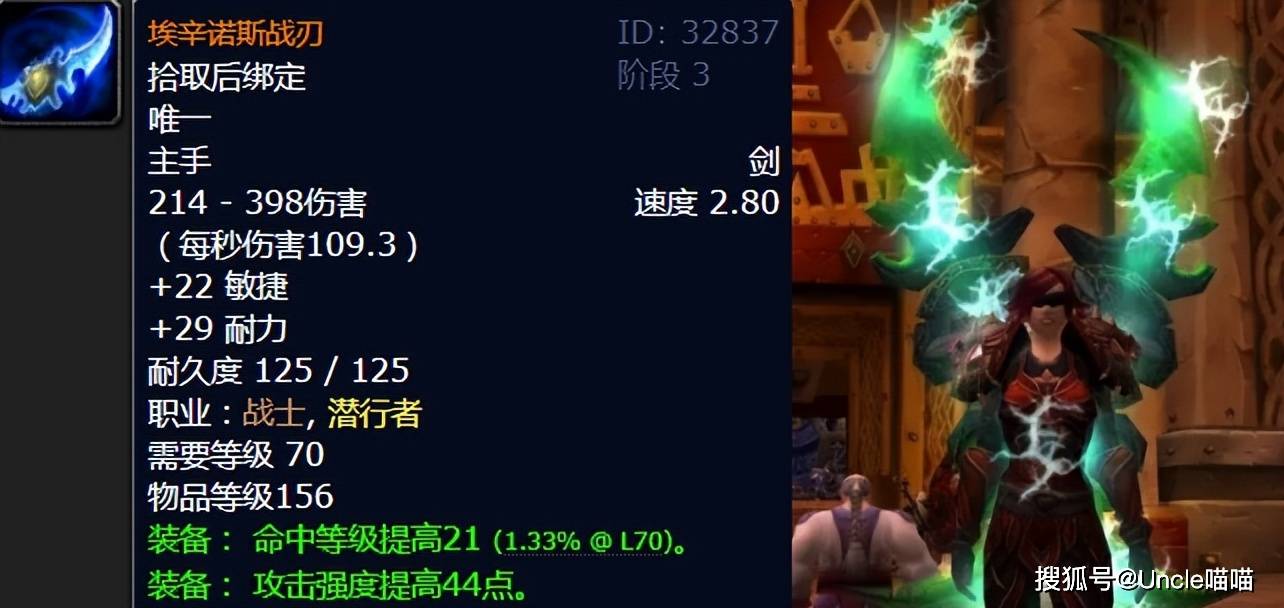 提到TBC版本,就绕不开伊利丹手中的这对圆月弯刀。作为魔兽世界首套职业限定橙色武器,埃辛诺斯战刃不仅以其流线型的恶魔风格外观收割了无数颜值党,更以其恐怖如斯的逆天属性成为盗贼与狂暴战的毕业梦想。当年为了凑齐主副手,多少玩家在黑暗神殿门口蹲守数月,“不完整的男人”梗更是传遍各大服务器。即便到了怀旧服,蛋刀依然是金团最核心的卖点,红不红就全指望它了。