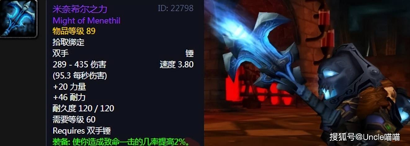 纳克萨玛斯克尔苏加德掉落的米锤,是60版本近战职业的信仰之锤。超高的基础伤害搭配3.8的缓慢攻速,每一击都能造成恐怖如斯的伤害打击,2%的致命一击更是让它成为PVE领域的“版本答案”。当年拿着米锤的武器战,在团队里绝对是核心般的存在,不过怀旧服时期狂暴战还是居多,不知道各位大兄弟是否喜欢米锤呢?