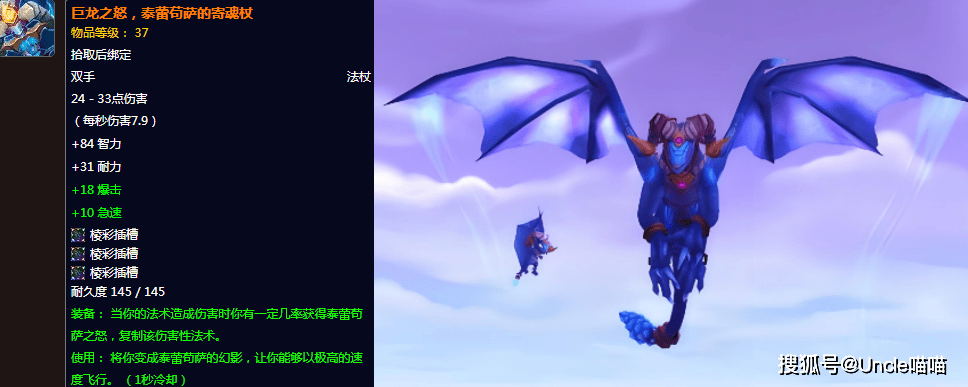 龙魂杖,是法系玩家的浪漫。这把法杖不仅属性强大,更拥有一个逆天特效——使用后可以变身为可飞行的蓝龙泰蕾苟萨,骑着蓝龙翱翔在艾泽拉斯的天空,绝对是最拉风的事情。即便到了现在,能变蓝龙的特效依然让它成为玩家心中的经典,那么最后的灵魂拷问也是强势袭来,各位大兄弟指导龙魂杖是哪个版本出品的不?我们评论区见!