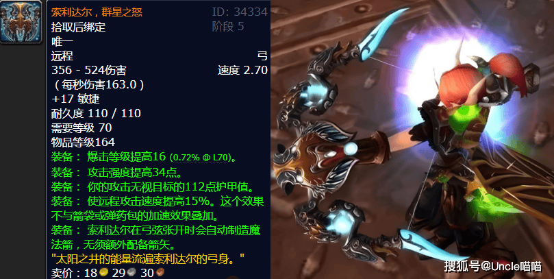 他可以说是猎人最梦幻又最无奈的武器了,非职业限定也是让狂暴战和盗贼大兄弟横插一脚,特别是怀旧服金团为主的时代,猎人想要从三橙玩家哪里拿下橙弓还是难如登天的。