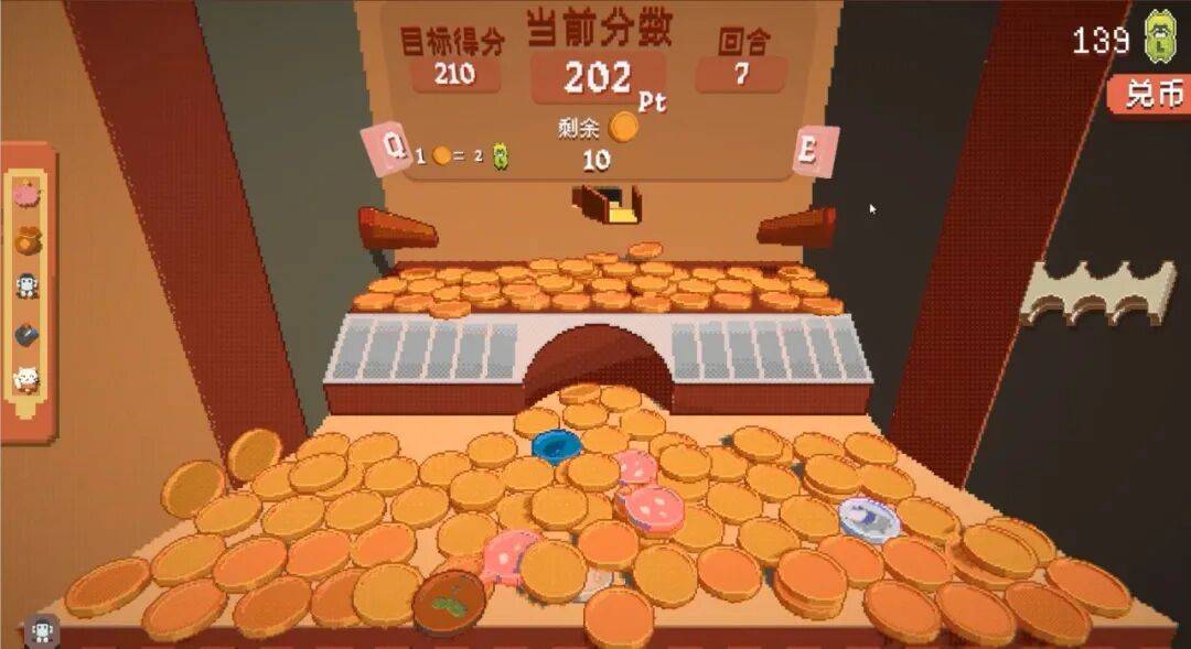 一个来自过去的想法在此时开始萌芽。2024年初,乌龙带原本没玩过推币机的万兽去了趟电玩城,她们在那里玩了好一会儿推币机。当时《小丑牌》正在火,万兽脑子里突然蹦出一个问题:如果把推币机和这种构筑式肉鸽结合在一起,会怎么样?