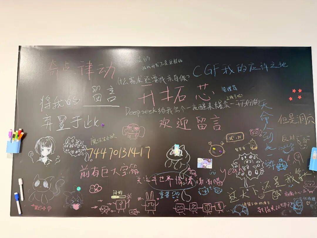 开拓芯孵化器里的小黑板,写满了各个团队的留言