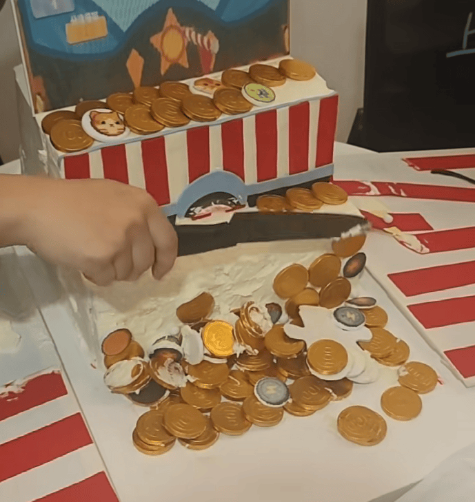 发售当天,万兽忙得连朋友圈都没顾上发。倒是孵化器里另一位独立游戏开发者,微信发了开拓芯专门为《浣熊推币机》定做的庆祝蛋糕,做成了类似游戏中推币机机台的形状。