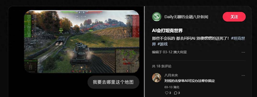 前段时间,一条让AI玩《坦克世界》的帖子,引起了玩家们的热议。这条帖子的主题很简单,就是一位玩家用游戏截图,询问AI自己应该如何走位。