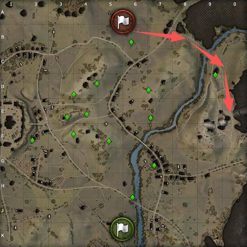 从截图来看,这位玩家驾驶的是五式重战,地图则是斯特拉斯福,出生点位是上方。按照通行的思路,正常来说就是走左边小道,然后过河,进入飞艇废墟进行交火。