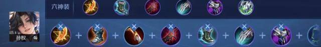 孙权最新的铭文出装:9x宿命,1x红月,10x鹰眼,5x狩猎,5x夺萃