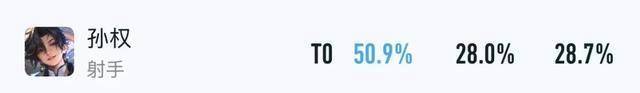其次,孙权这位“真正的战刺”,也凭借着独特的机制和夸张的吸血比例,达到了50.9%胜率+56.7%BP率的巅峰赛数据。