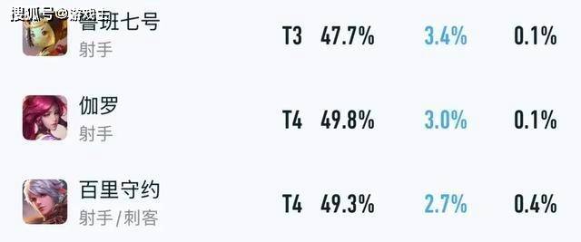 我对比了上个赛季的巅峰赛数据,发现该牢的射手依旧很牢,比如鲁班七号,伽罗和百里守约就还是仅有49%胜率左右,出场率也低得可怜。