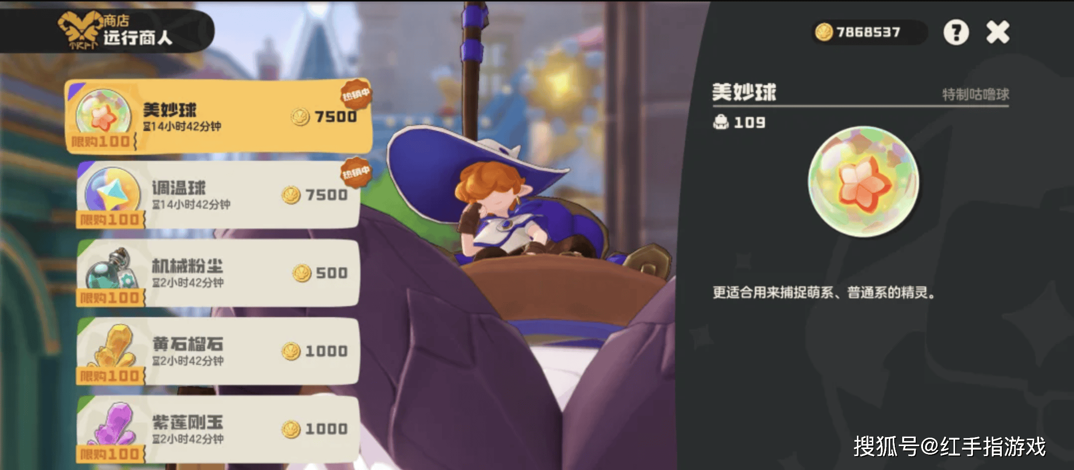 售卖地点:游戏内“远行商人”处(每日8:00-24:00出现,需魔法等级≥20级解锁)上架两款神级捕捉道具: