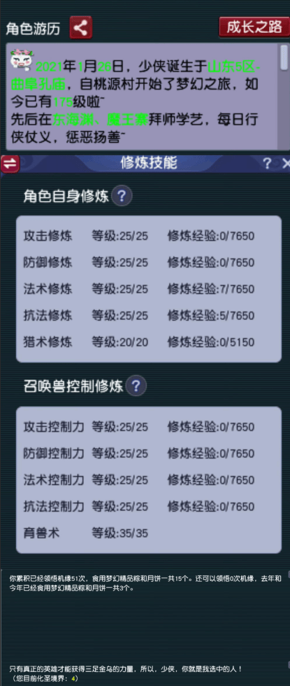 据他介绍,他不是不想用储备金点修炼,而是单纯地性通过刷师徒的方式来提升。他希望亲眼看着自己亲手打造的号一步步成长起来有满满的成就感。目前终于迎来回报,他已经是化4满机缘,强壮神速只点到40。