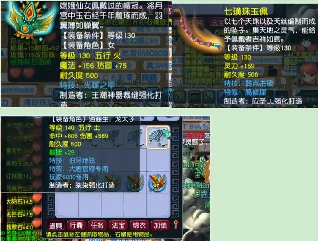 宝哥当晚还为绅士哥鉴定装备,在打造百来件装备之后,最终收获三件还算不错的装备,分别是:130级光辉之甲的女头,130级弱点击破的项链,140级高伤附加29点敏捷的伯牙绝弦扇子。