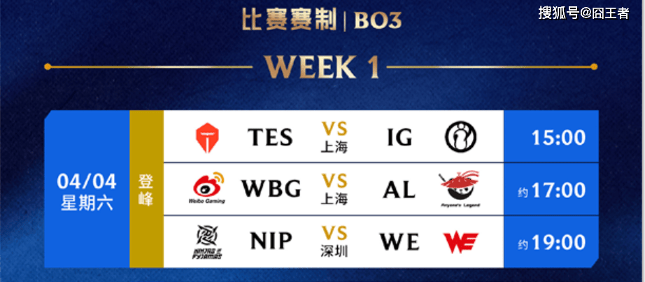 按照赛程,4月4日的比赛,由焦点之战TES对战IG;WBG对战AL;以及NIP对战WE组成。在率先结束的第一场比赛中,IG横扫TES,拿下首胜;AL零封WBG。那么NIP和WE,他们谁能获胜,就让赛场来告诉我们吧。