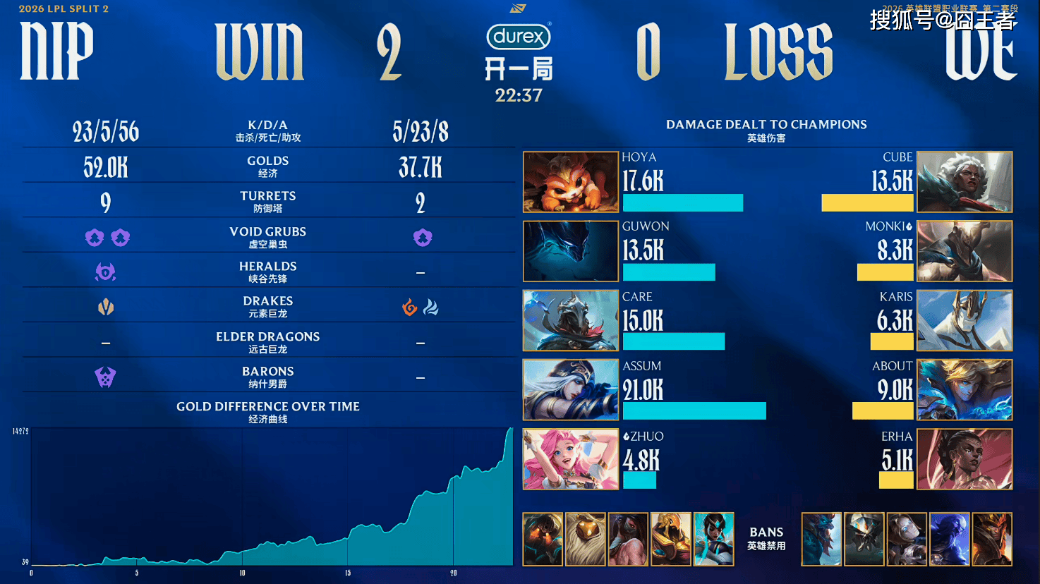 最终NIP零封WE,拿下首胜。坦率地讲这种比赛,没有观看必要,WE就是来凑数的,连NIP都打不赢。