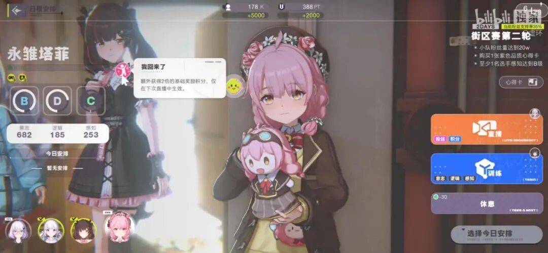 作为领队,你需要安排队员在每个回合的去向,是直播获取资源,还是训练提升属性,又或者选择休息,避免队员压力爆表。