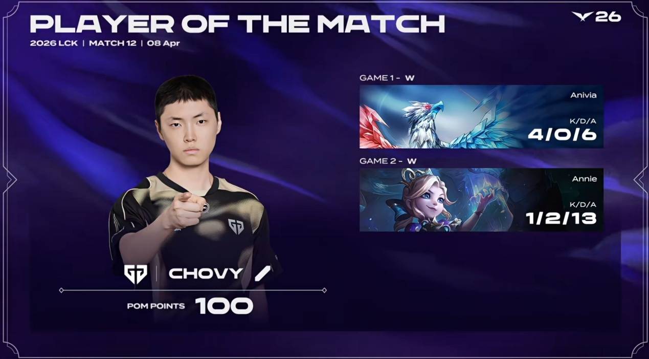 随后GEN轻松推进高地,T1尝试绝命一波再次宣告失败,GEN冲高地轻松打赢团战后一波结束比赛,Faker最终战绩定格在1-6,综合两局比赛发挥来说,表现都远不及Chovy, Chovy也拿下了本场比赛的POG。