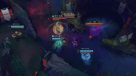 Canyon关灯之后,GEN的狼母和安妮可以更加从容地进场,整个体系只要在大招开团后,接上一个控制,高爆发的芸阿娜就能快速完成清场任务。