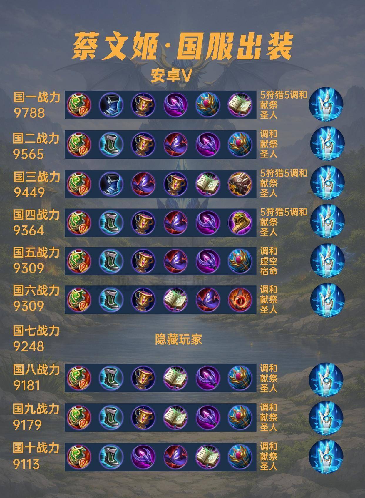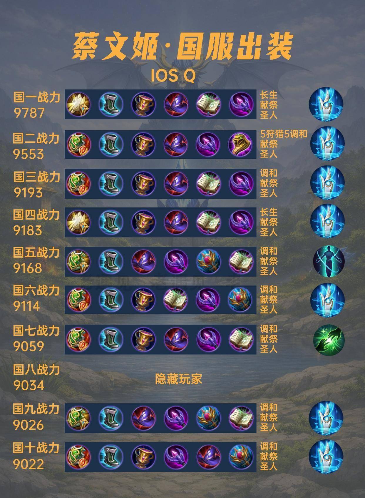 这一篇文章我们来看一下40位国服蔡文姬的出装铭文汇总。
