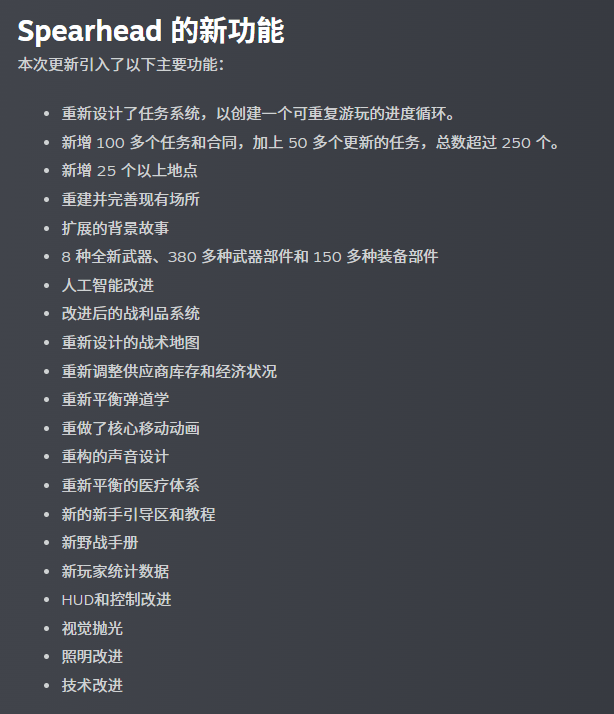 同时0.4版本弱化了敌人AI,包括削弱AI的枪法,放大了火力压制、受击硬直等补偿玩家马枪的机制等。这也允许玩家充分发挥雇佣兵的装备优势,借助高倍镜和高精准度枪械,仅靠单人压制大量AI。