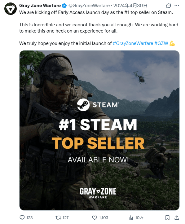 当时《灰区战争》上过Steam畅销榜第一