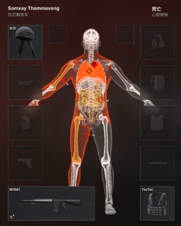 灰区拟真向的健康与器官系统,高度考验玩家的应变能力。和现实中一致,大脑、心脏、肺脏等重要器官的损毁,无论是受子弹直接命中,还是被空腔效应影响,都会导致角色当场死亡或昏迷。受损没那么严重的器官,也会给角色带来呼吸困难、咳嗽、呕吐等负面效果。