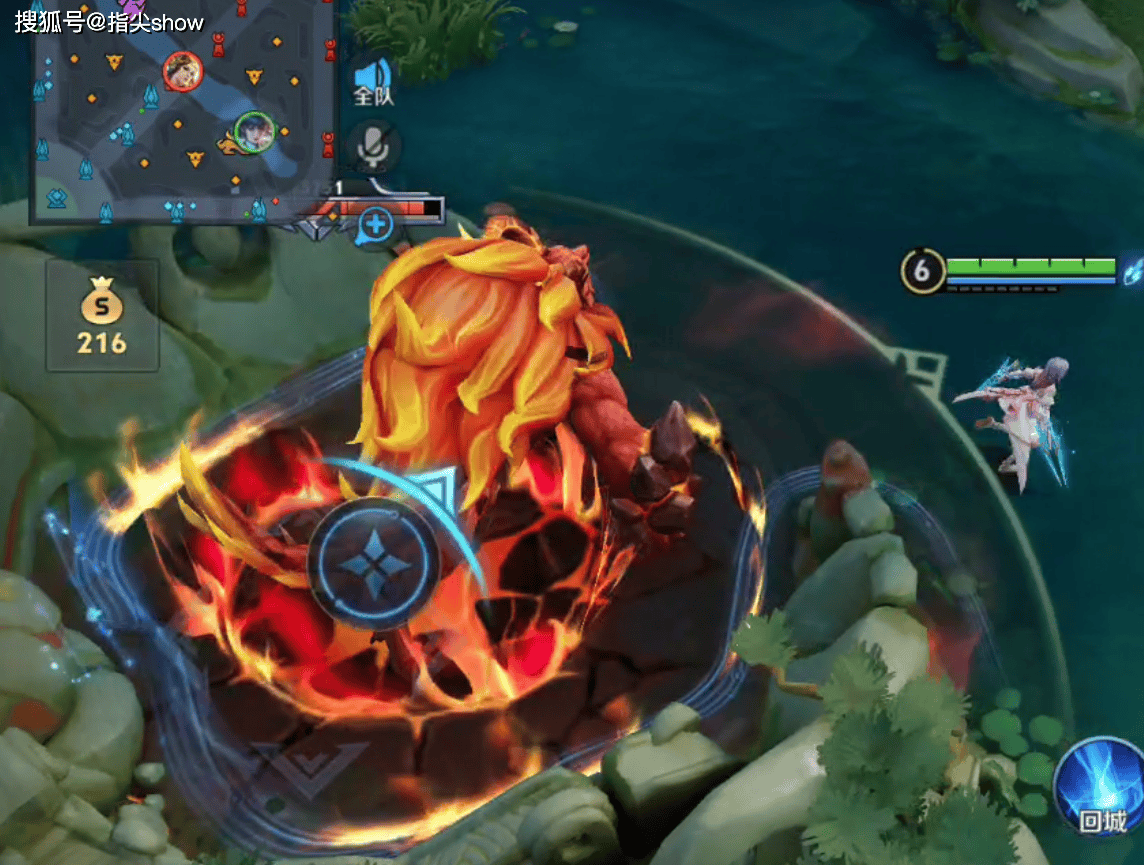 拍地击飞,这个动作基本没变,附近英雄都会被震飞,地表会出现岩浆一样的裂痕,红色的特效更有压迫感。