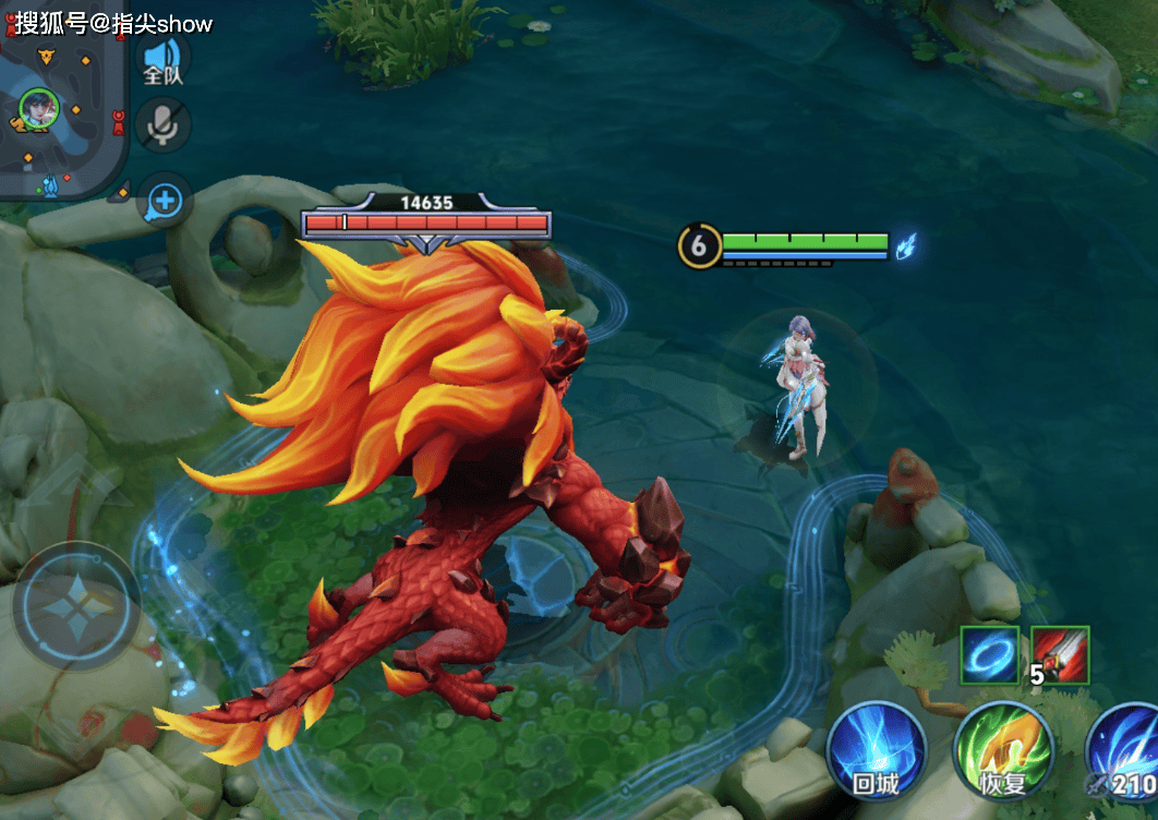 王者中的红buff,到了【世界】里反而成了需要四人组队挑战的高难度首领,也就是大boss,体型更加庞大,通体火焰燃烧,视觉压迫感极强,甚至还有两个阶段的战斗能力。