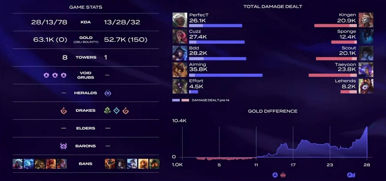 纵观开赛以来的表现来说,个人认为KT之所以能够完成登顶的核心原因是他们的队伍配置有比较大程度的升级,辅助Effort状态非常好,这就帮助KT补足了第一赛段的一个关键短板环节,然后就是上单完美哥的实力越来越强了。