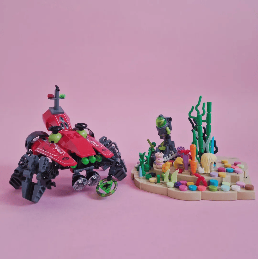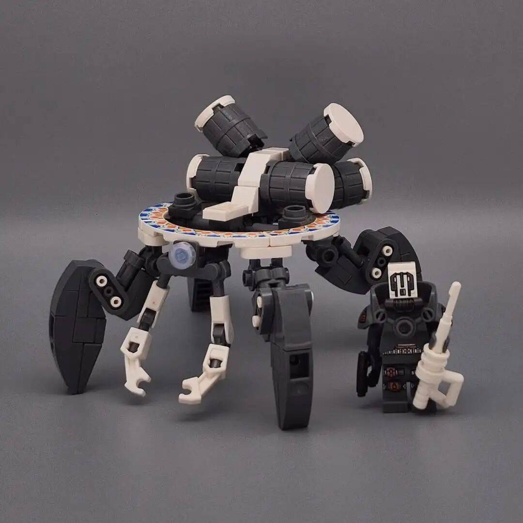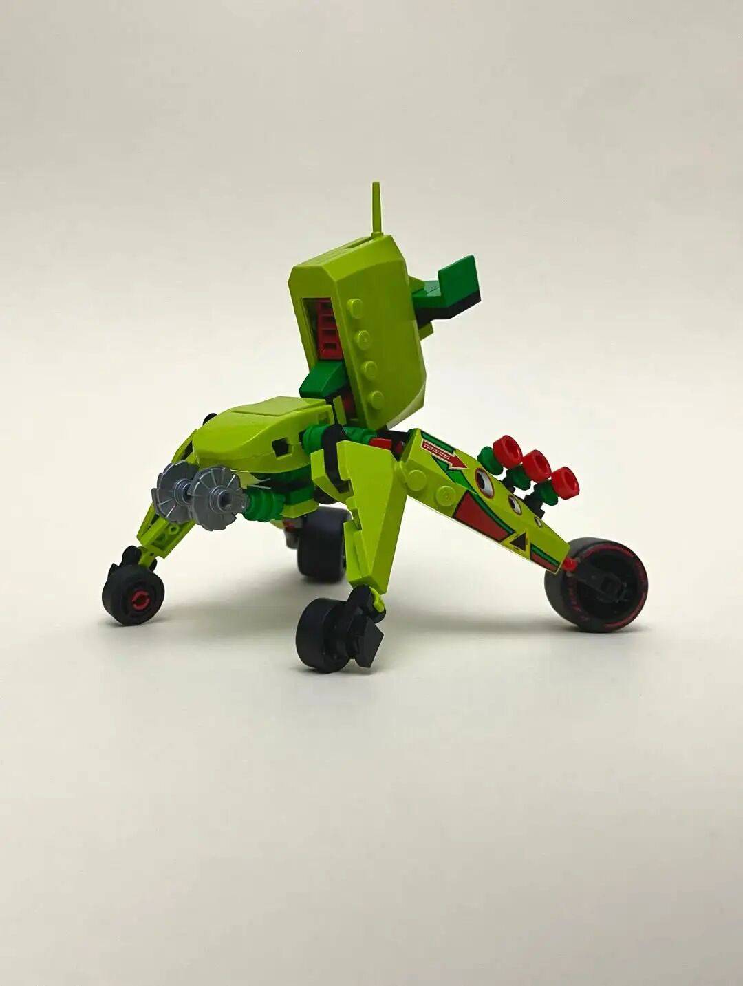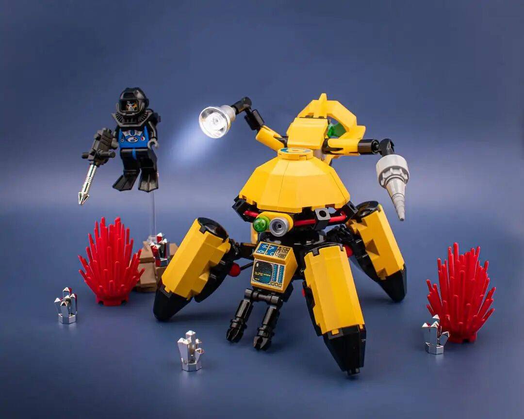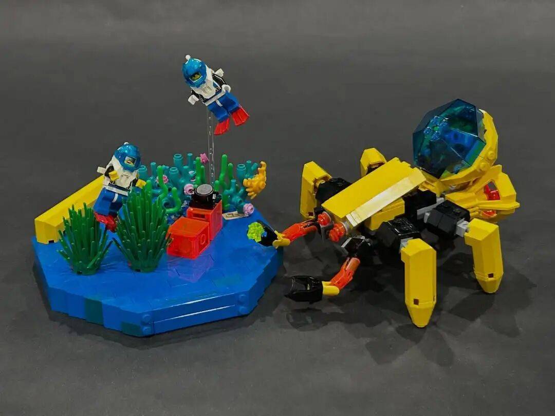 乐高设计师 Theo Bonner 也参与了,他的作品巧妙使用橙色弯管件和多种曲面零件,三个眼睛的设计更强化了蜘蛛般的视觉效果。