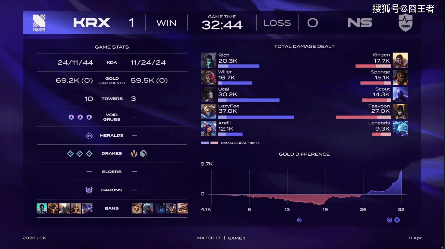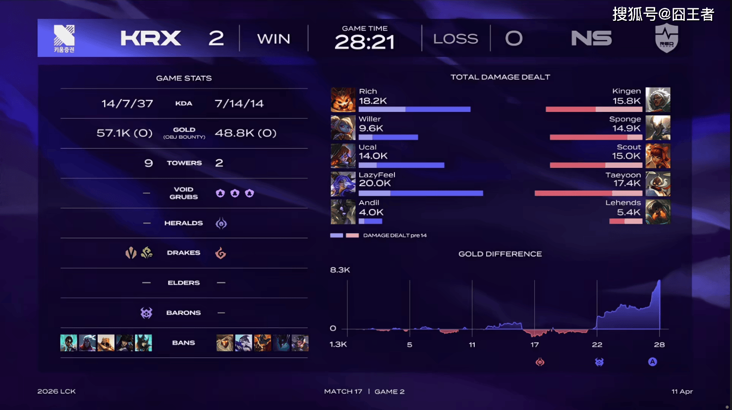 最终KRX零封NS。坦率地讲,NS和KRX这两支队伍,在LCK中本就是中下游的队伍,能拿分,就只能站在对方的身体上拿。这次是KRX拿,那么下次是谁拿,就说不定了。