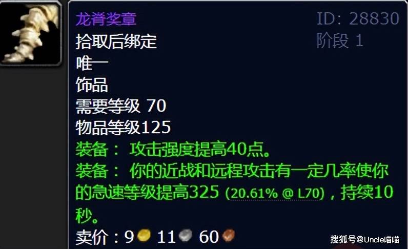 谁能想到,一件来自格鲁尔的巢穴的T4级别饰品,会成为贯穿整个TBC版本的保值神器?龙脊奖章的常驻属性仅为40点攻强,但它的核心价值在于被动触发的急速提升:有一定几率在命中目标后,使急速等级提高320点,持续10秒。