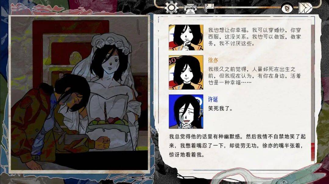 在最开始,我确实是把《颈椎病》当作恋爱游戏来玩,对三个可攻略角色的兴趣,始于徐亦,陷于顾淑芬。