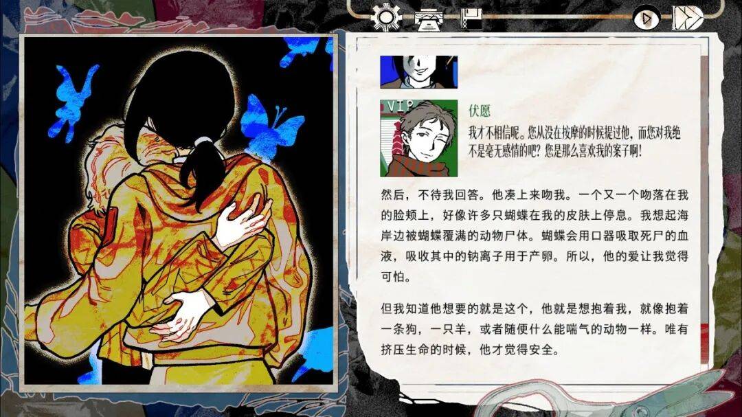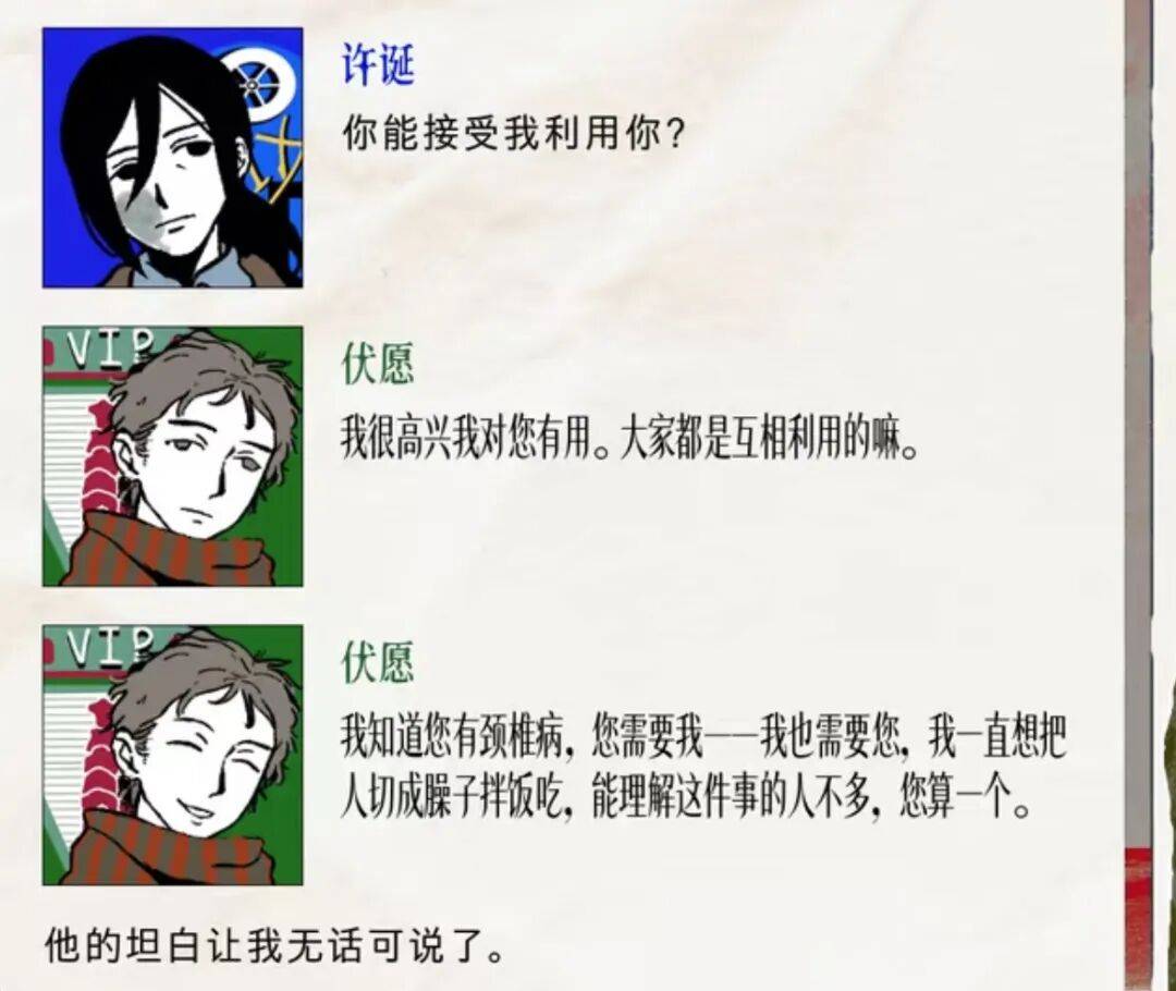 事实上,《颈椎病》的文本质量确实足以匹敌大部分摆在书架上的当代小说,但在它埋入了选项分支、成为游戏的那一刻,想要抵达人与人之间关系的核心概念最终达到了完整。