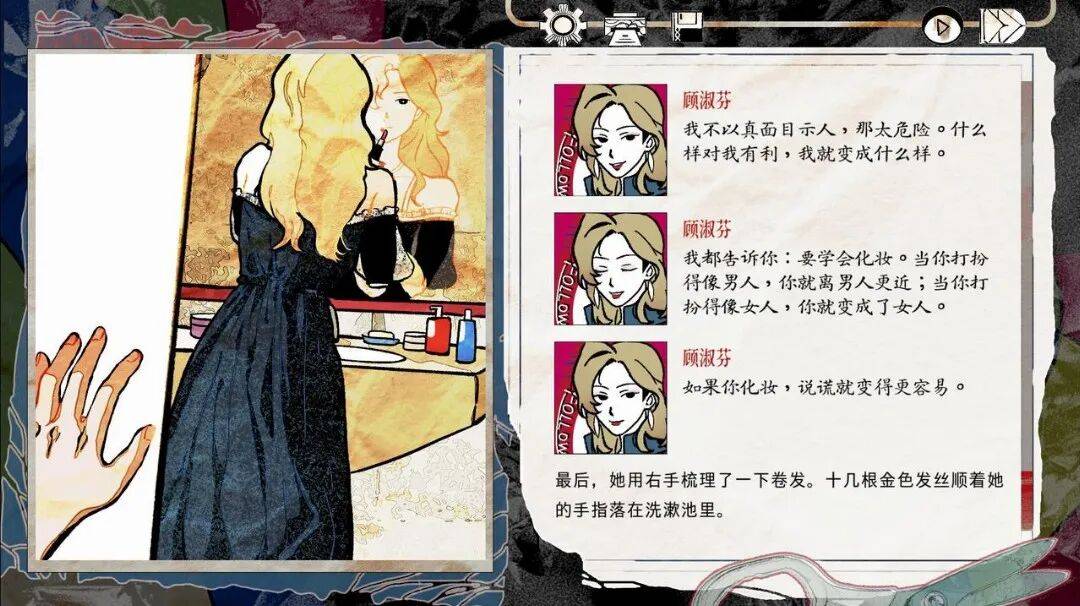 进入她的支线,你会随着许诞的视角,跟着顾淑芬在游走在各色人群之间,看她见人说人话,见鬼说鬼话,或是在只有两人的场合,说着种种看似坦诚或是欲擒故纵的话。