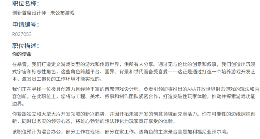 近日,暴雪官网再次更新职位招募信息,其中“创新主设计师”一职的招聘内容引发了玩家对其未公开新作的猜测。