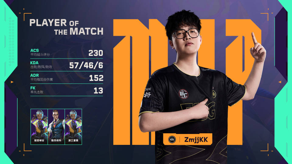 在第一赛段开始之前,很多队伍都进行了一些调整,其中在圣地亚哥大师赛当中表现还不错的AG,重新启用了新阵容,解放K1ra身上指挥的重担让他全力去对枪,而EDG调整了阵容,新阵容启用之后表现都还不错!不过在常规赛MVP这个奖项方面,EDG的大明星Zmjjkk毫无悬念的摘下,在整个第一赛段常规赛阶段,他的表现真的就像是炸鱼一般,招牌甩狙几乎每一把都有高光时刻,在队伍最需要他的时候,他也能够扛住大旗站出来!