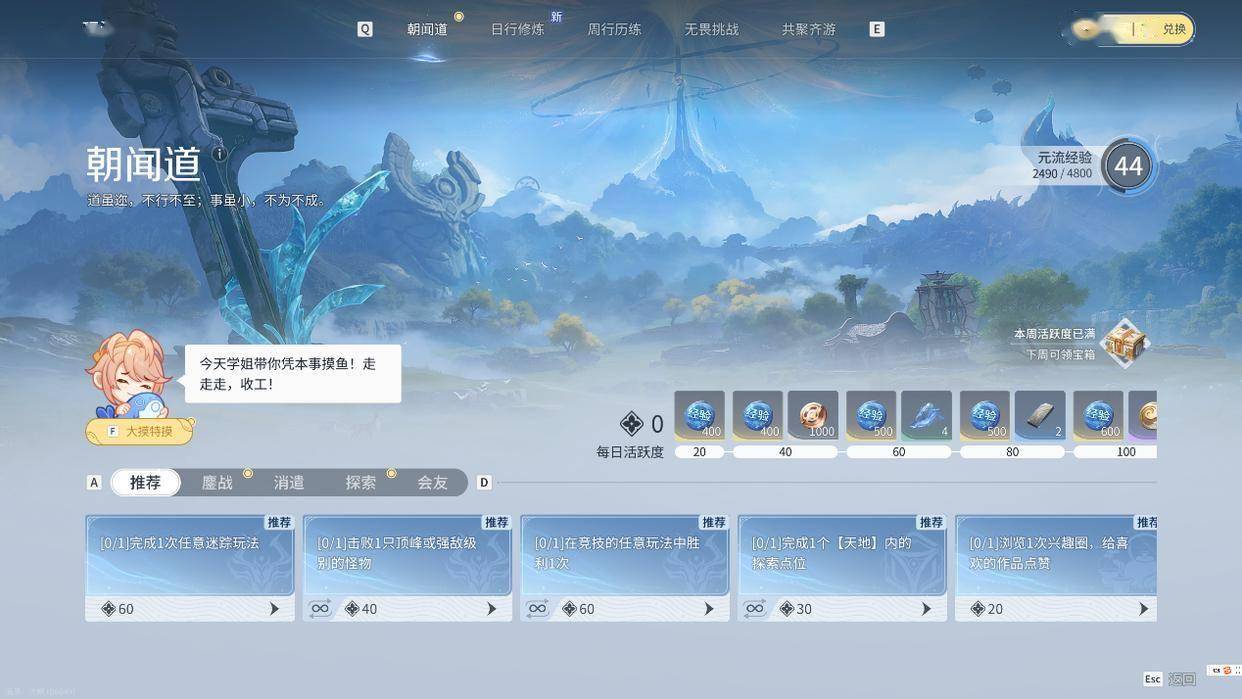 如果还是不够,那就去打开逍遥游,找到里面的问剑,里面的boss首通都是给经验的,打不过甚至可以叫人一起打,打一圈几千经验还是很香的。然后就是做一些支线任务,跟着指引做就完事了。