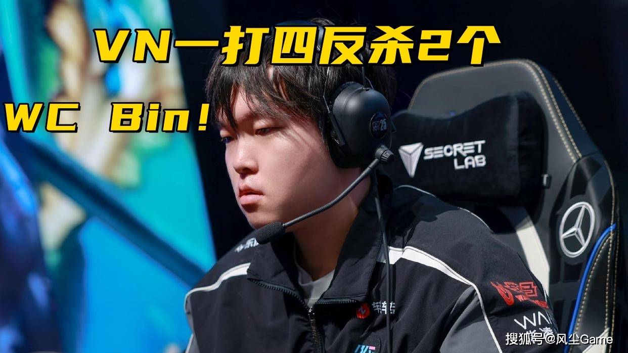 Bin哥隐身了20多分钟,直到三件套,才开始有作用,28分钟,BLG拿到大龙,推上路的时候,中野被IG击杀,四个人追VN,结果反手被Bin哥秀了,1打4的情况下,Bin先杀打野再击杀AD,虽然最后阵亡了,但也是一打四反杀两个,Bin哥这波操作,绝对是第二赛段,画面感最强的VN。